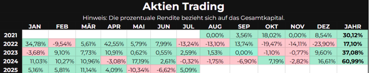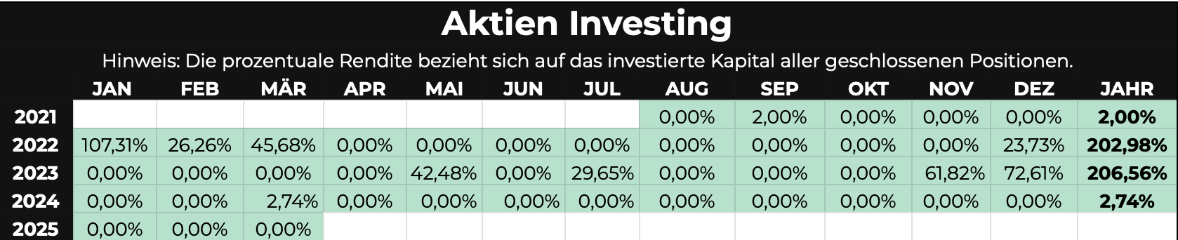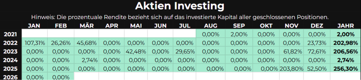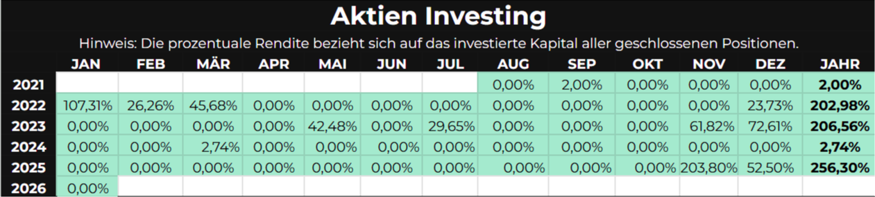 Hinweis: Die ausgewiesenen Ergebnisse wurden auf das jeweils investierte Kapital erzielt.