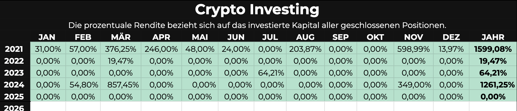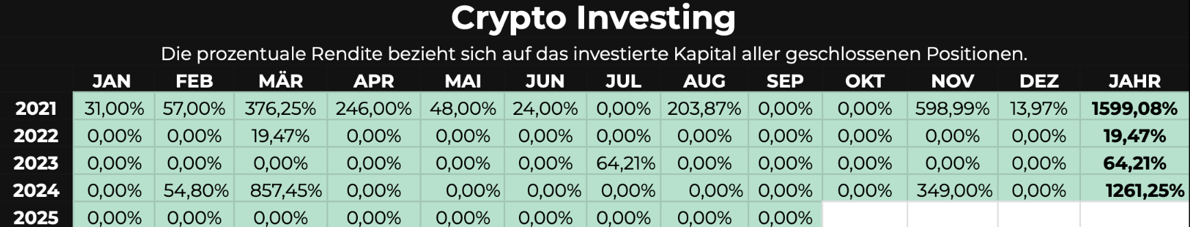 Hinweis: Die ausgewiesenen Ergebnisse wurden auf das jeweils investierte Kapital erzielt.Die vergangene Performance ist kein Indikator für zukünftige Ergebnisse.