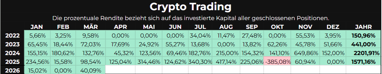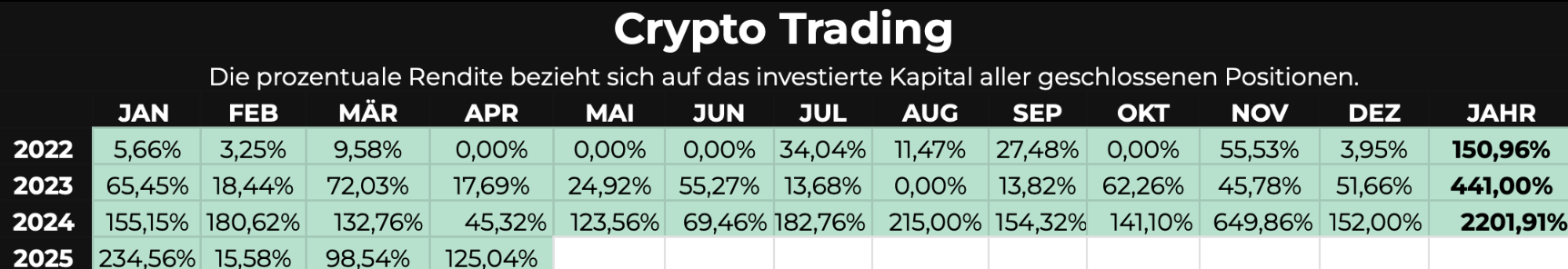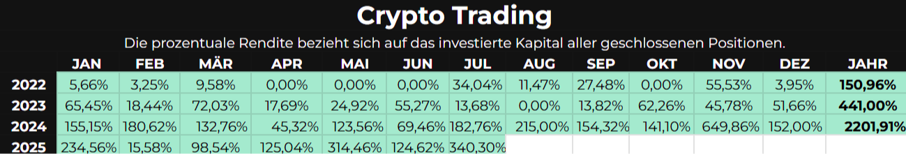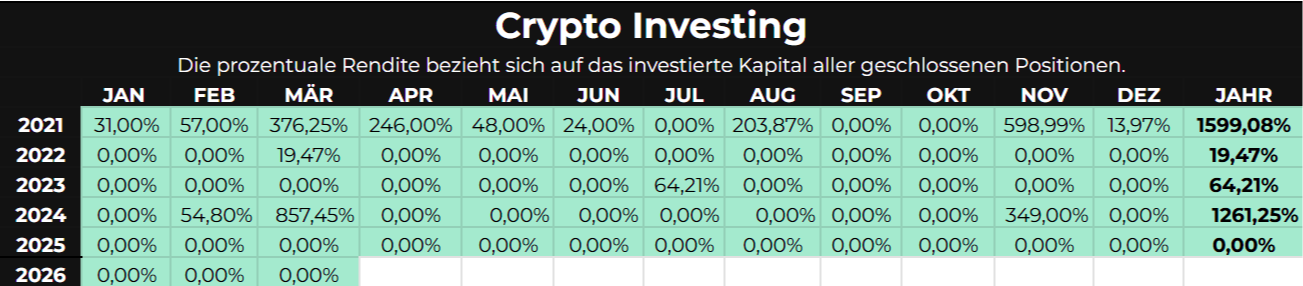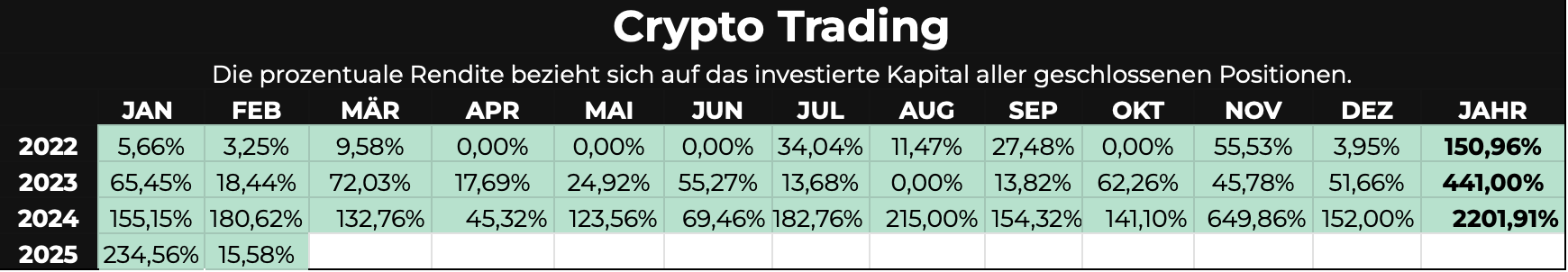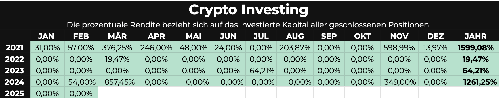 Hinweis: Die ausgewiesenen Ergebnisse wurden auf das jeweils investierte Kapital erzielt.