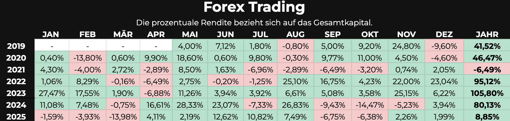 Hinweis: Die ausgewiesenen Ergebnisse wurden auf das jeweils investierte Kapital erzielt.Die vergangene Performance ist kein Indikator für zukünftige Ergebnisse.